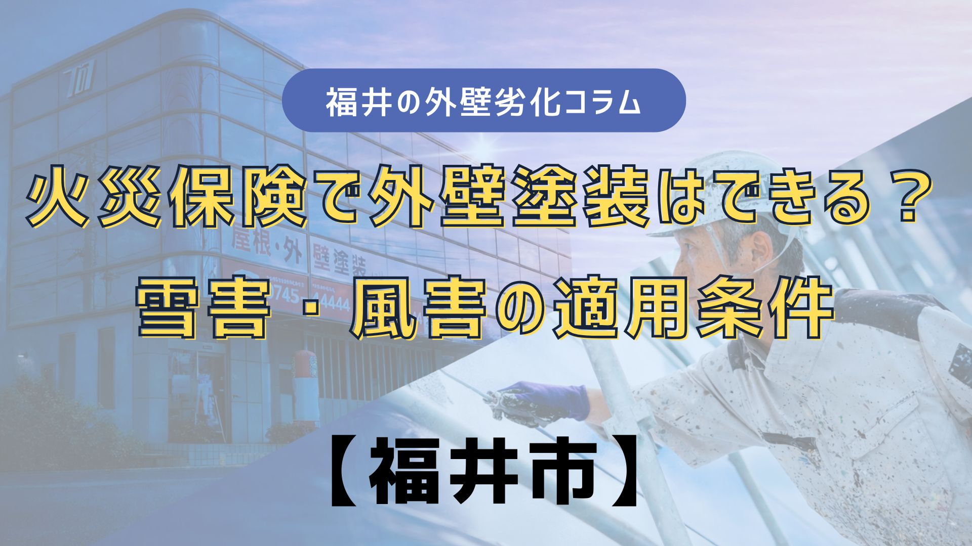 HOME福井の外壁劣化コラム 福井の外壁劣化コラム 2026.01.14 福井の外壁劣化コラム 福井市の外壁塗装|事業者ごとに言うことが違う理由と失敗しない判断軸 2026.01.07 福井の外壁劣化コラム ALC外壁の塗装ポイント|劣化症状と塗り替え時期【福井市】 2026.01.13 福井の外壁劣化コラム 火災保険で外壁塗装はできる?雪害・風害の適用条件【福井市】 ピックアップPICKUP 塗装品質へのこだわり 有資格者による建物診断 わかりやすく納得の見積もり